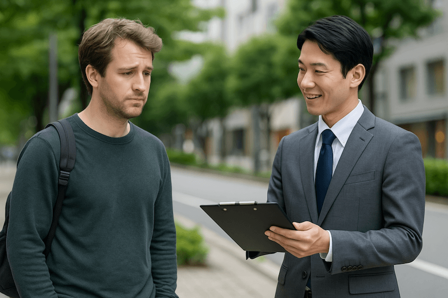Here’s another example. This happened when I went to the Immigration office to renew my wife's residence card. There was a real estate agent right outside the building, aggressively pitching apartments to foreigners.